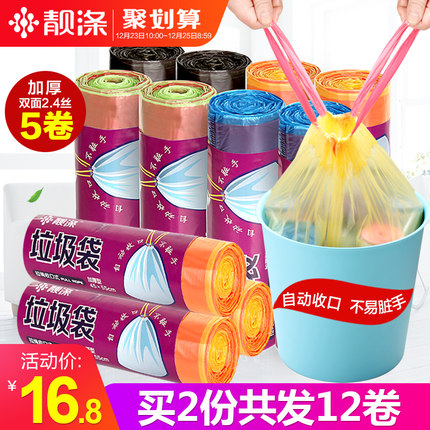 靓涤手提式垃圾袋加厚黑色家用一次性自动收