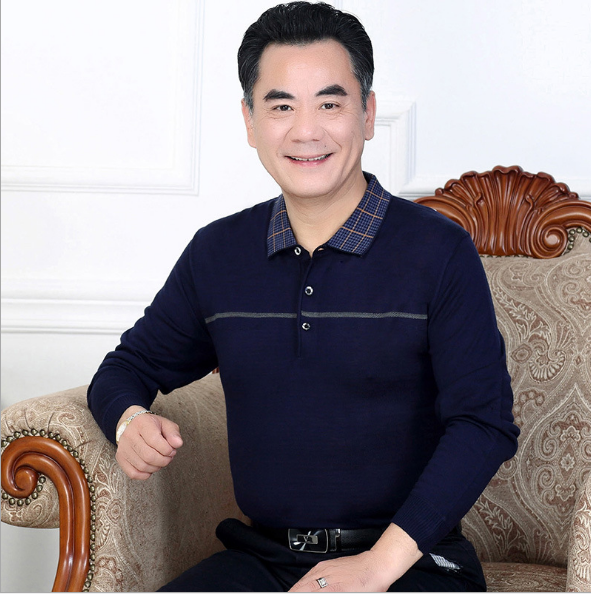 春季男装中老年体恤男薄款毛衣针织T恤衫爸